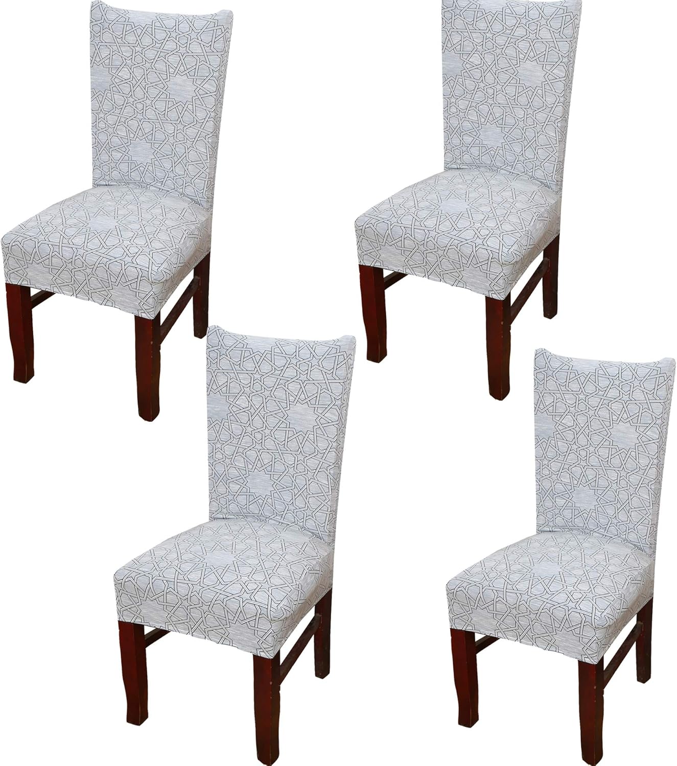 Redecorate your dining room in style with this Sure Fit Stretch Dining Room Chair Cover. - It comes in a rich color pallet that blends with most room decor, and it will add a stylish appearance to your dining room area. - This cover gives you long-lasting durability and easy maintenance. - The Sure Fit Dining Chair Cover also features an elastic closure to give a snug fit on the chair that also gives a neat look to the furniture. - Easy to keep clean, this item is resistant to staining, and the easy care fabric can be safely washed in the washing machine when needed. Specification: Secure fit with sewn-in elastic hem; Stretch fabric is perfect for hard to fit furniture; Easy care-wrinkle resistant; Machine washable; Memory stretch fabric and all-around elastic provide a clean, sleek look that goes on easily and stays in place Fabric content: 95%pOLYESTER+5%Spandex Size of Best Suitable Chair: Back Height:45-60 cm (17.72-23.62 inch) Back Width:35-48 cm (13.78-18.9 inch) Seat Length 38-46 cm (14.96-18.11 inch) Seat Width:38-46 cm (14.96-18.11 inch) Package Included: 4Pack x Stretch Dining Room Chair Covers
