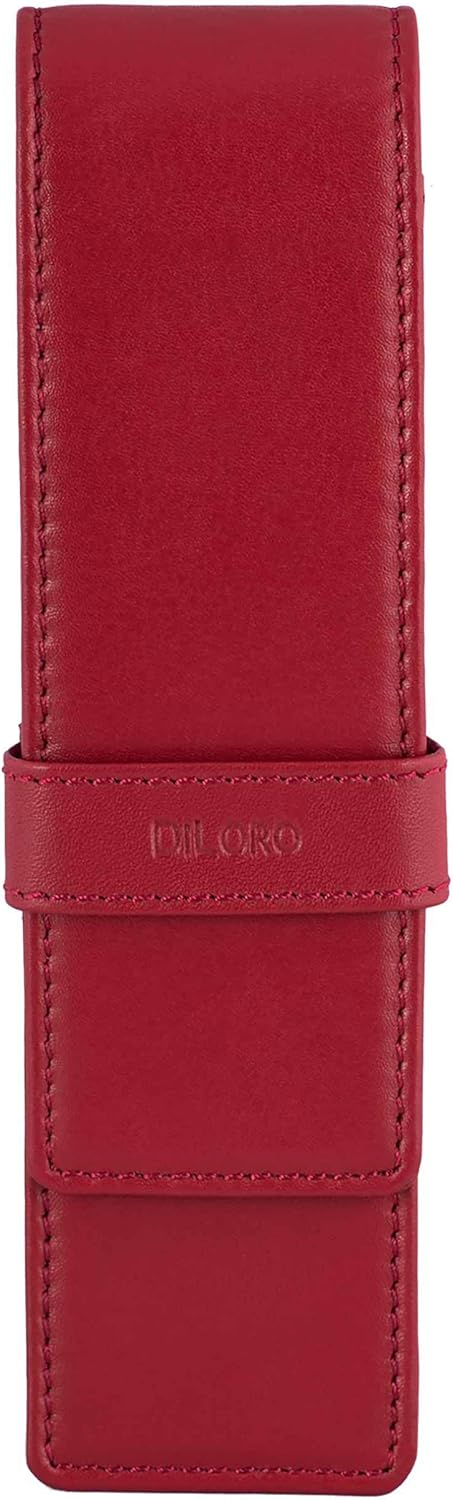 DiLoro Leather Double Pen Case Pencil Pouch Holder for Two Fountain Ballpoint Rollerball Pens and Pencils (Black)